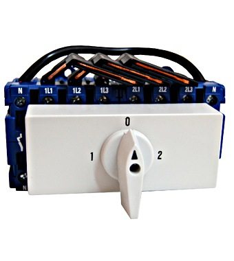 Acest comutator rotativ modular cu 4 poli este destinat comutării între două surse de energie trifazate: rețea electrică și generator, sau două rețele independente. Cu o capacitate nominală de 32A și o putere de comutare de până la 11 kW, este ideal pentru aplicații rezidențiale, comerciale și industriale de putere medie.