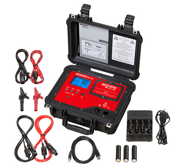 În cadrul testelor de punere în funcțiune și inspecției periodice a sistemelor fotovoltaice conectate la rețea în conformitate cu VDE 0126-23 (DIN EN 62446), pot fi efectuate teste de polaritate, precum și măsurători ale tensiunii în circuit deschis și curentului de scurtcircuit ale șirurilor fotovoltaice conectate în paralel. scos, depozitat și documentat în siguranță și eficient până la 1500 V/ 40 A.